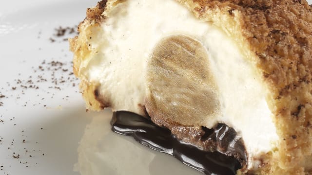 Il “bonet” alla torinese con caffe lavazza, banana e gelo di amaretto