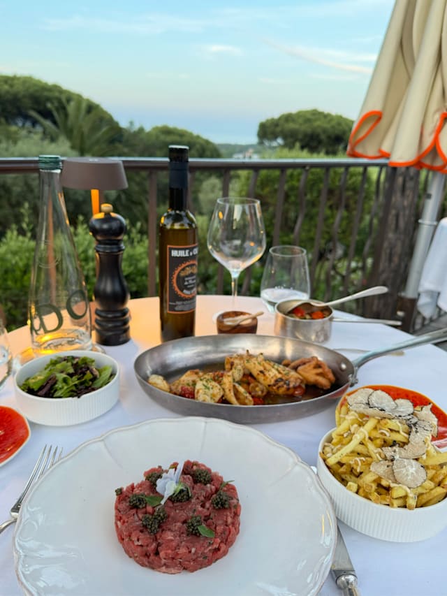 Sensational location and view. Lovely decor and courteous and attentive staff, though maitre d took a long time to become amiable. Issue was food, the kitchen is frankly not up to the price level they set. For €200 a person I expect food of top quality. The ceviche was over cured and salt eroded any subtlety of flavour. Carre de Agneu turned out to be two small noisettes of lamb wrapped in some Non descript reduced fat. Portion size was minuscule and simply lacked fulfilment. Wine list is heftily marked up but well served Dessert was a highlight and utterly delicious. I love the view and gardens and location and would return for that but I feel for such a good chain they need to step up a gear with the kitchen. There needs to be a balance in value for money and satisfaction terms.