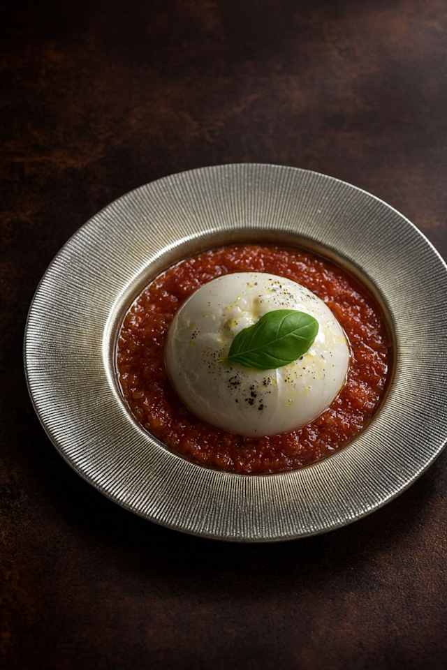 - Burrata su crema di pachino