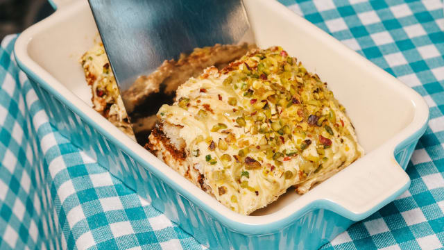 Focaccia stuffed with Mortadella Bologna IGP, burrata and pistachio cream