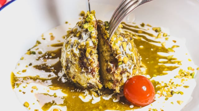 BIG Neapolitan-style potato croquette withmortadella, burrata and pistachio cream