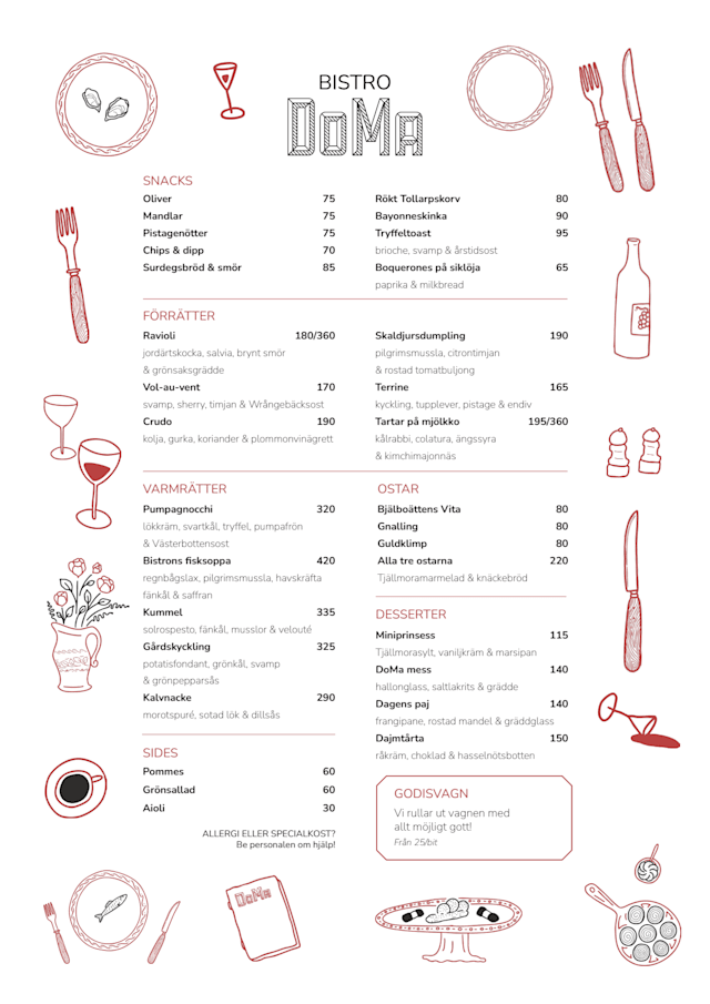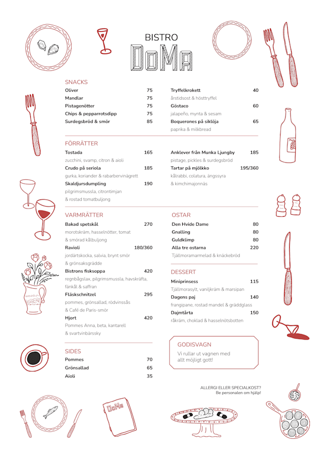 DoMa Bistro is an obvious place for those who just want to sneak in for a drink, but also for those who want to eat a whole dinner. In the bar you will find creative drinks, and in the bistro a seasonal menu and a really lovely wine list.