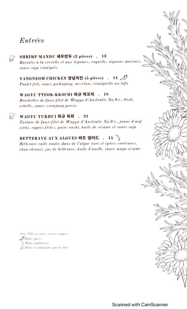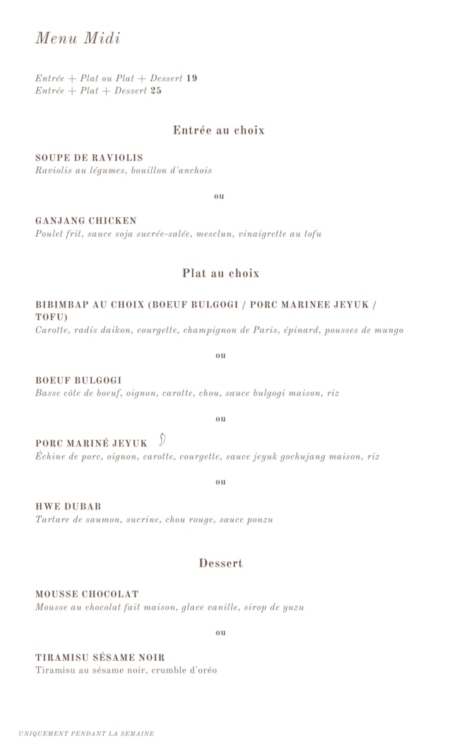 10/10My mother requested Korean food during our trip to Paris. She loves the food which is a huge compliment. The service was amazing. Everyone spoke Korean which was helpful for my mother. The food was beautifully plated and tasted great. Wonderful experience.