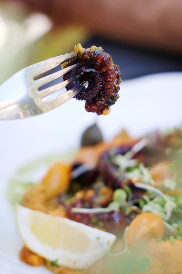 - Grillée sur sa caponata , sauce du chef à l'ail noir fumé