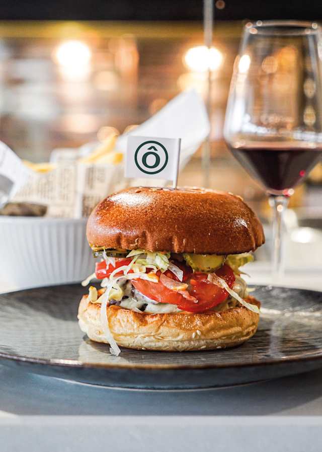 - Steak pur bœuf (200gr) et Gruyère AOP, sauce bbq et cornichon, pommes frites et saladine