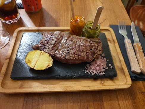 10/10Great service at this atmospheric restaurant serving delicious cuts of meat. Huge portions and good value. We ate early with kids but the place was already buzzing by the time we left. Great find.