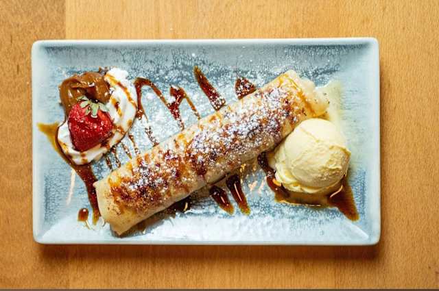 Dos bolas de helados a escoger: helado de frutilla / helado de vainilla
