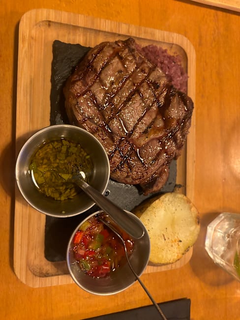 10/10Great food: tried the Angus burger and the ribeye steak, both were excellent. I really loved the chimichurri that was served with the steak. The french fries that came with the burger were excellent too. The chocotorta was perfect to end with. Oh and this place serves the best Caipirinha!