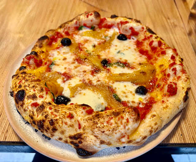 - crème de cèpes, mozzarella fior di latte, champignon de paris, pancetta, roquette, parmesan