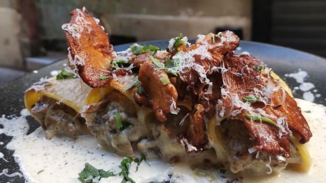 Paccheri Farci au confit de canard ,cèpes ,ricotta