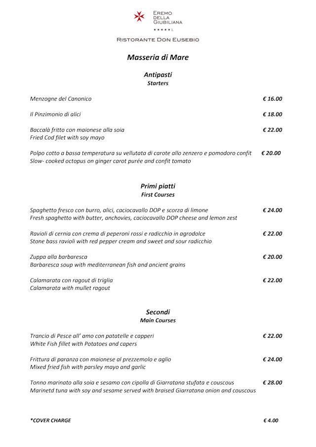 Entrando al ristorante “Don Eusebio”, l' atmosfera che si percepisce, è quella di un tuffo nel passato. La stupenda collocazione del nostro ristorante, è situata dentro l' antico refettorio dei Cavalieri Dell'ordine di San Giovanni. La suggestiva vista che si gode dalla nostra sala, è quella degli u...