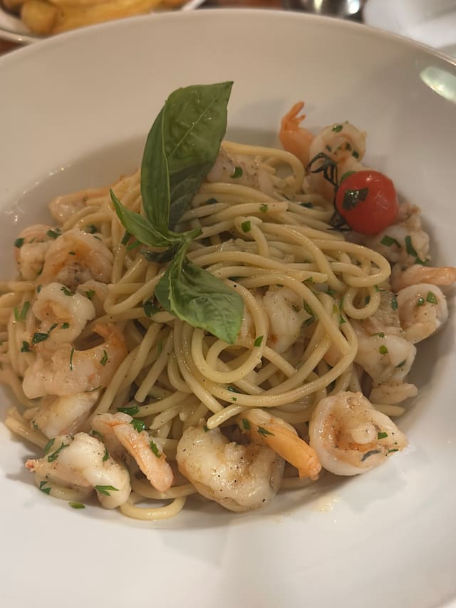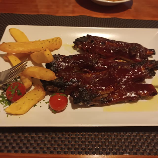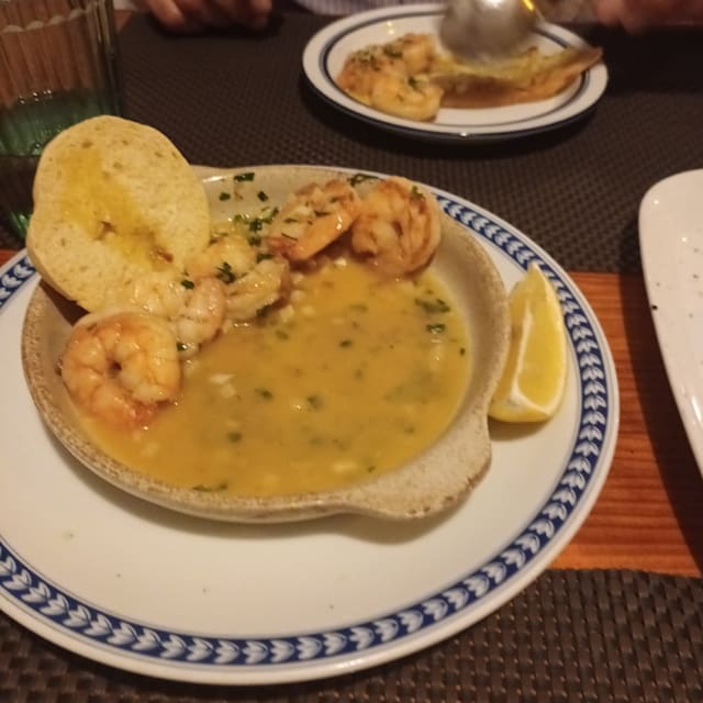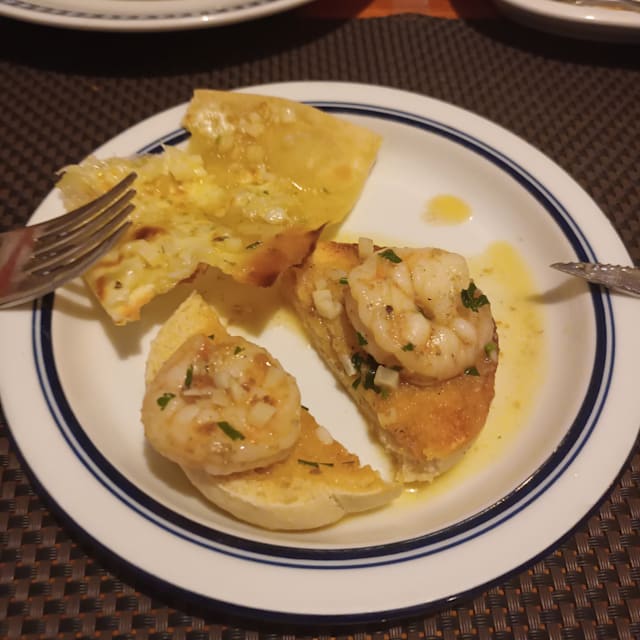 10/10+2We shared a half portion of cheesy garlic bread and garlic prawns, excellent. My ribs were a little on the charred side, but the Manager insisted that he serve another portion when they were ready, which he did, although the first ones were absolutely fine. Everything was superb, and staff with personalities. Husband will be having leftover sirloin steak for breakfast.