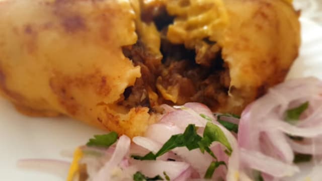 Es una variedad de aji peruano relleno de carne picada y gratinado a horno con queso. se acompaña con pastel de patata.