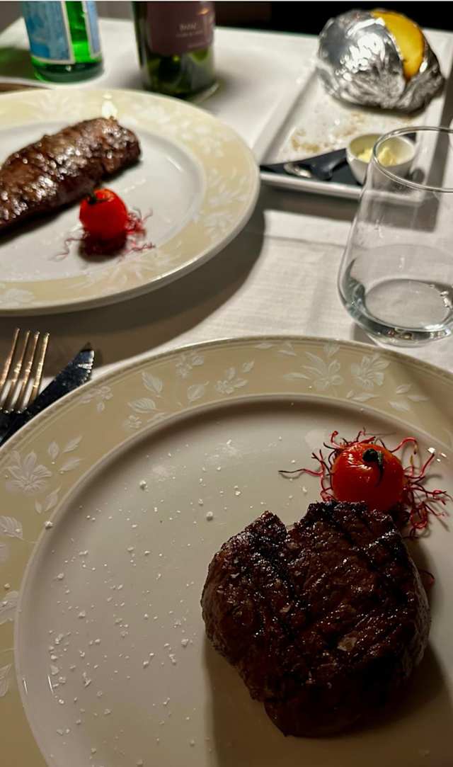 10/10Very good choices for a steak dinner, we started with a mixed salad, just like in Argentina, only 3 ingredients…lettuce, tomatoes and onions…then we had the lomo (filet) and the ribeye…both were about 8-9 ounces each, perfectly grilled to requested temperatures, a side of french fries. We finished with the panqueque con dulce de leche, delicious.