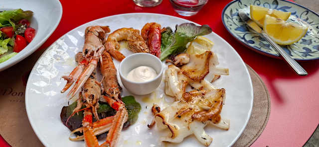 Grigliata di mare con filetto di orata, polpo, calamari, scampi e mazzancolle con salsa allo yogurt