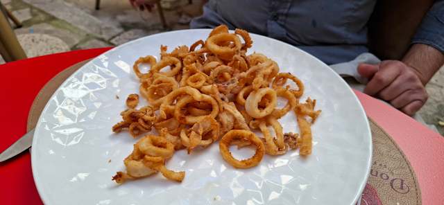 Frittura di calamari e gamberi con verdurine croccanti e maionese al tabasco