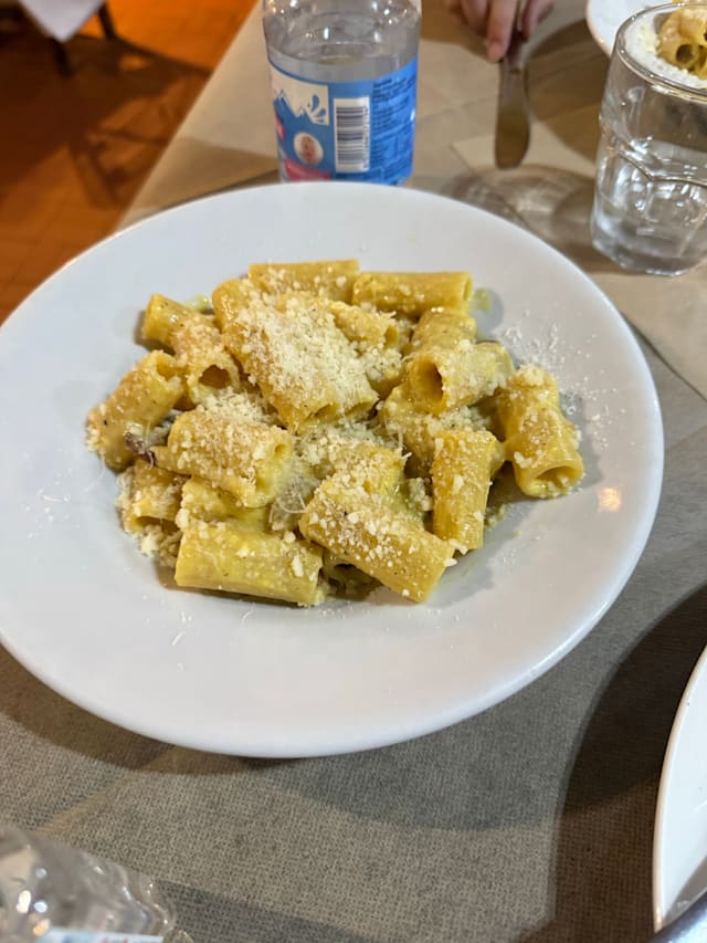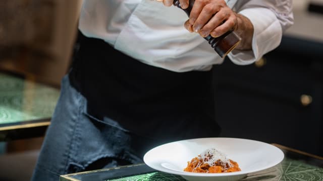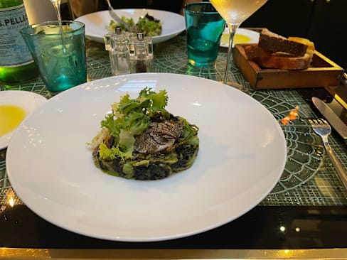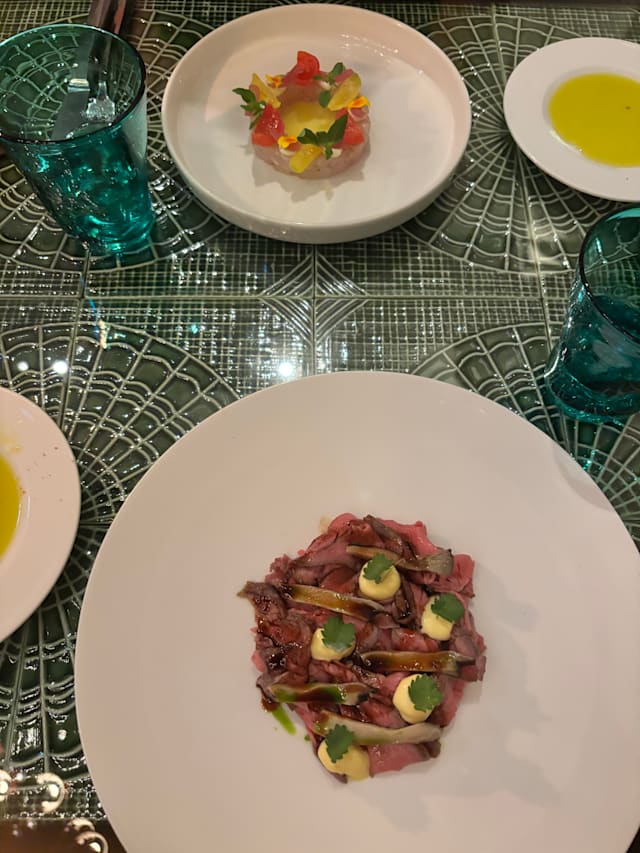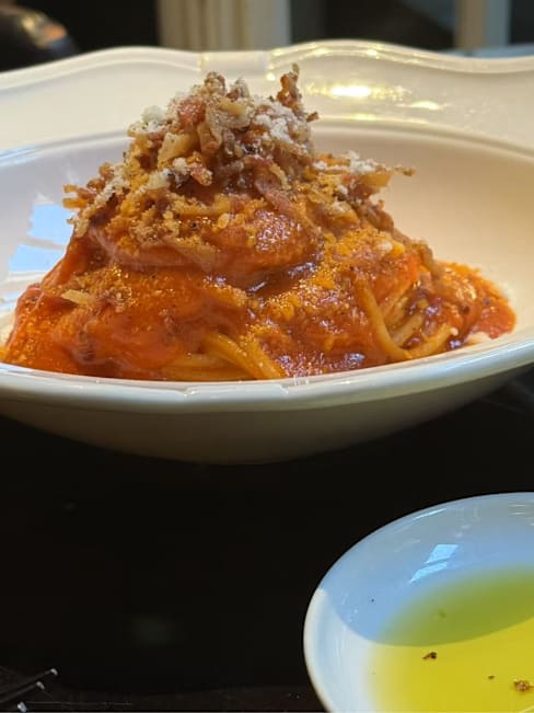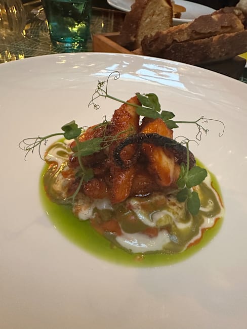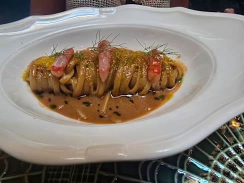 10/10This was the best meal I’ve had so far in my four days in Rome. The two appetizers were absolutely delicious. The grilled squid tentacles had an intense Maillard flavor — rich and smoky, perfectly crispy and charred on the outside, and the sauce had a unique and memorable taste. The fish tartare was incredibly fresh, and the accompanying sauce made it a gentle, balanced dish — unlike the sharp acidity of a Peruvian ceviche. A wonderfully mild and flavorful tartare. For the main course, we ordered two different pastas. The spicy pasta was especially impressive — the cured meat inside had been fried or roasted, giving it a crispy texture that paired beautifully with the cheese. A perfect combination of flavor and texture.