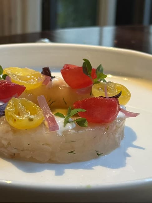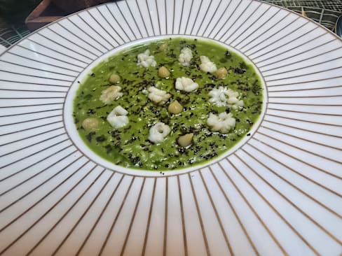 9.5/10Small menu, and everything was fantastic. The dining area was very fun, maximalist aesthetic with a very humorous flare, def worth a walkthrough. The food was very enjoyable, tasty and beautifully served. Would gladly come back.