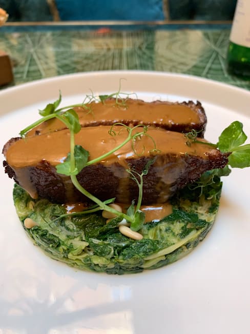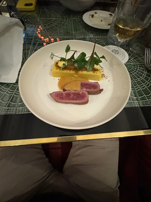 9.5/10Small menu, and everything was fantastic. The dining area was very fun, maximalist aesthetic with a very humorous flare, def worth a walkthrough. The food was very enjoyable, tasty and beautifully served. Would gladly come back.