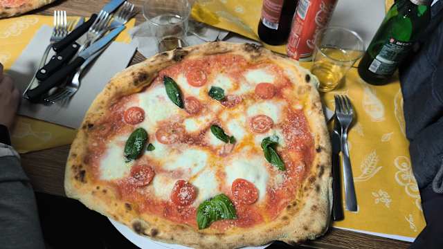 - Pomodoro san marzano, fiordilatte di napoli, salame piccante, olio, basilico, parmigiano