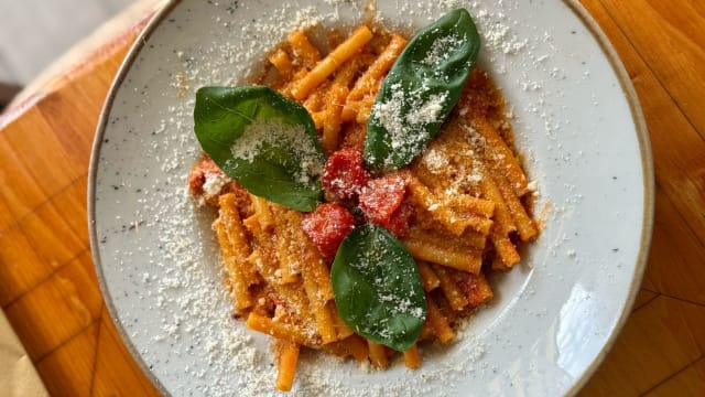 Pennette con pomodoro San Marzano, olio e basilico