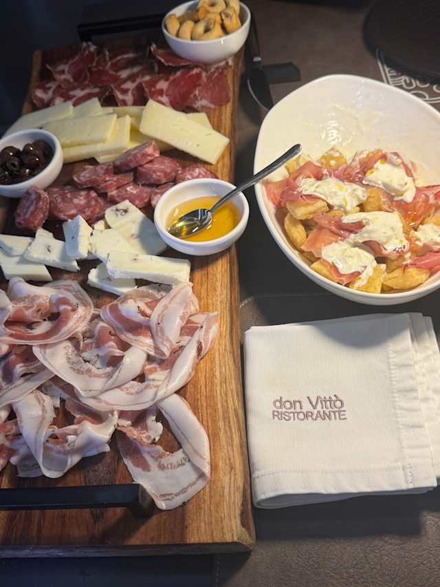 - Salumi e formaggi secondo disponibilità serviti con confetture e taralli