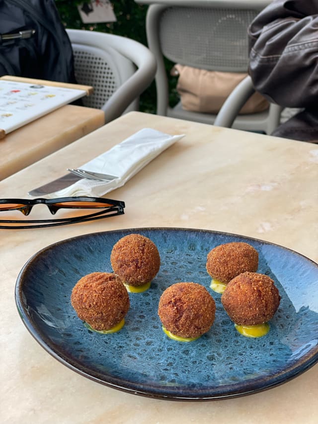 6/10I was so disappointed with dinner at Dona Maria. This was our second meal with the restaurant and we enjoyed the first so much that we returned. Dinner was so terrible. Appetizers: We sent the mushy garlic shrimp in olive oil back after we each ate one bite. Mush like mashed potatoes. We enjoyed the goat cheese croquettes, we also ate this at lunch. Main Course: Our main courses were the duck magret (cooked to the proper temperature but the fat wasn’t rendered). My bacalou was utterly soft and slimy. I tried to find firmer pieces to eat and gave up. The skin of the fish was “flubbery” I’m not sure this is an actual word but it best describes what it looked like. The fish was also full of bones (some small, some large) so if I’d wanted to eat it, I’d be pulling bones out constantly. What happened to the wonderful food we ate the day before$2 The service was great. They really want their diners to be happy. The restaurant is beautiful. If the weather was better they have a lovely outdoor dining area. Because of the wildly inconsistent food I can’t recommend this restaurant.