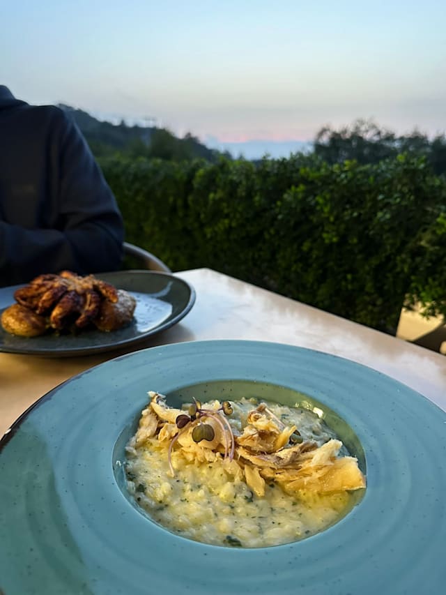 6/10Great views but you eat those a bit like one course. Cod was overcooked and not the freshest and spinach inedible. There are better restaurants in Sintra. Service was good so hope they get their act together.