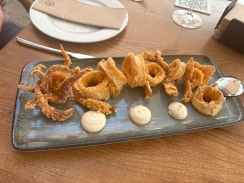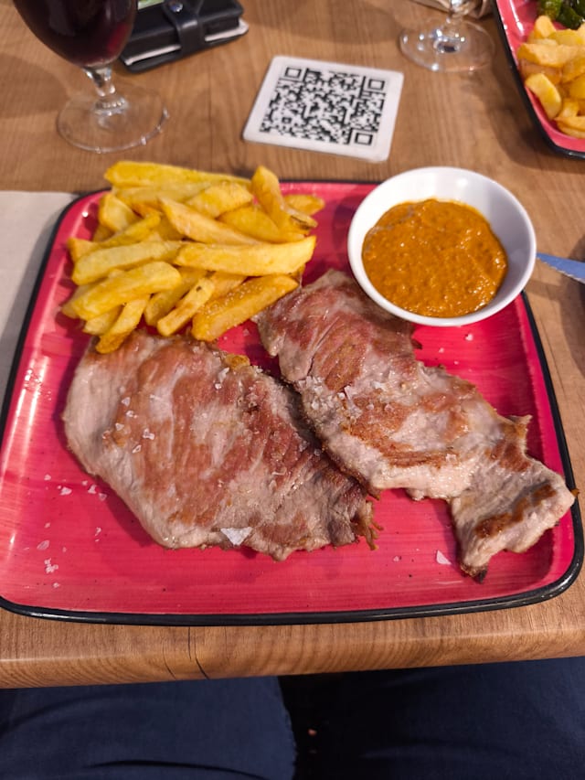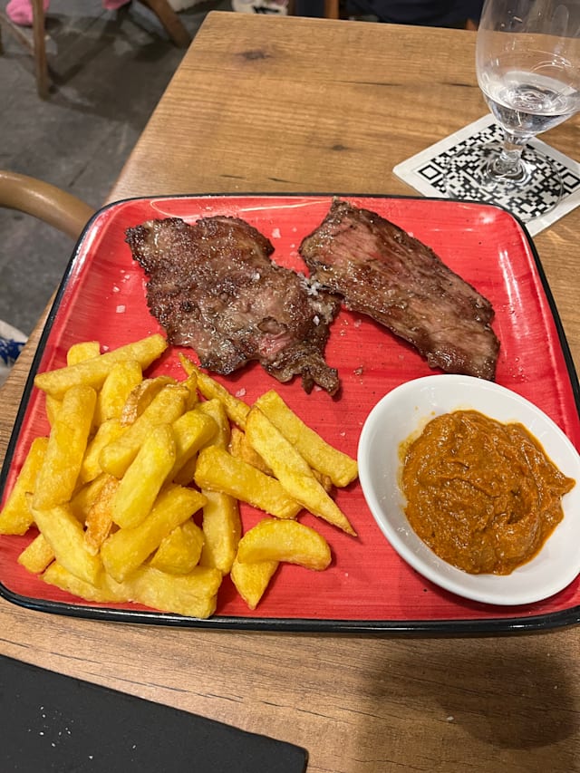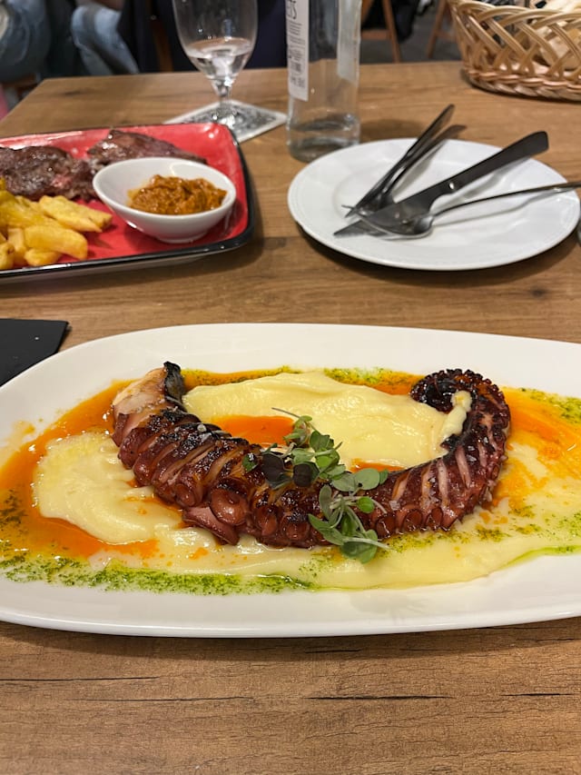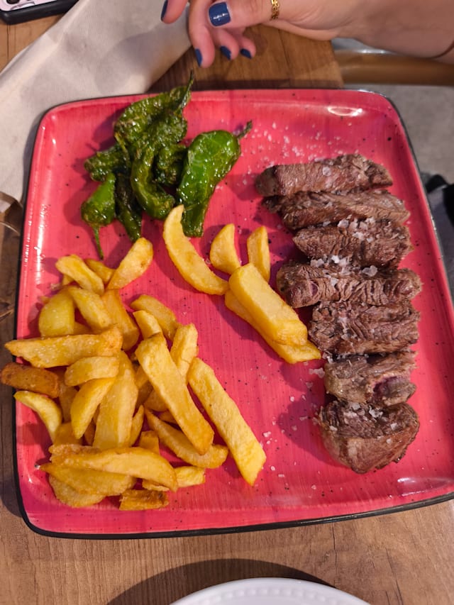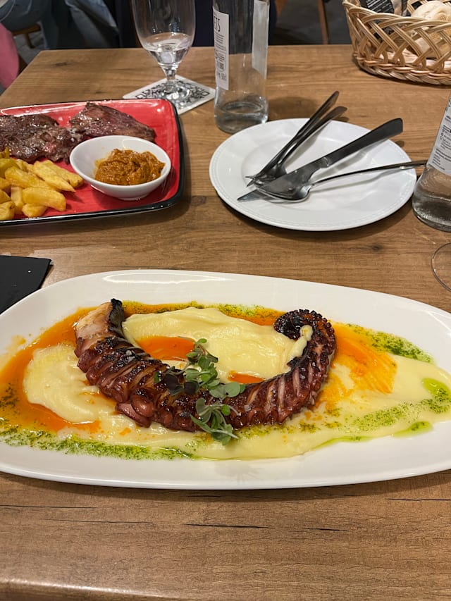 4.5/10This restaurant was rated 4.7 out of 5 on TripAdvisor. Based on that, I went with my wife expecting something special - but unfortunately, it didn’t live up to the hype. For starters, we ordered artichokes, prawns, and ham stir-fry. For mains, we had the Galician beef entrecôte and the gratin codfish with garlic & tomato. The starters were fine, but nothing memorable. The beef entrecôte was very chewy and fatty. I ended up spitting out about a quarter of the meat because it was simply too tough and unpleasant to eat - not exactly ideal. Overall it was a disappointment, and honestly not much better than the steaks you’d get at a pub in the UK. As for the codfish, the tomato sauce didn’t pair well with the dish. It wasn’t terrible, but it wasn’t remarkable either. Their service was mediocre at best. The waiter wasn’t rude but seemed distracted and eager for us to finish quickly and leave. His attitude felt cold and lacked hospitality one would expect from a restaurant with 4.7 rating.