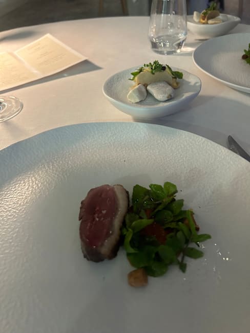 10/10+1Great 9 course tasting menu , superb service (Ruben) in a lovely location.