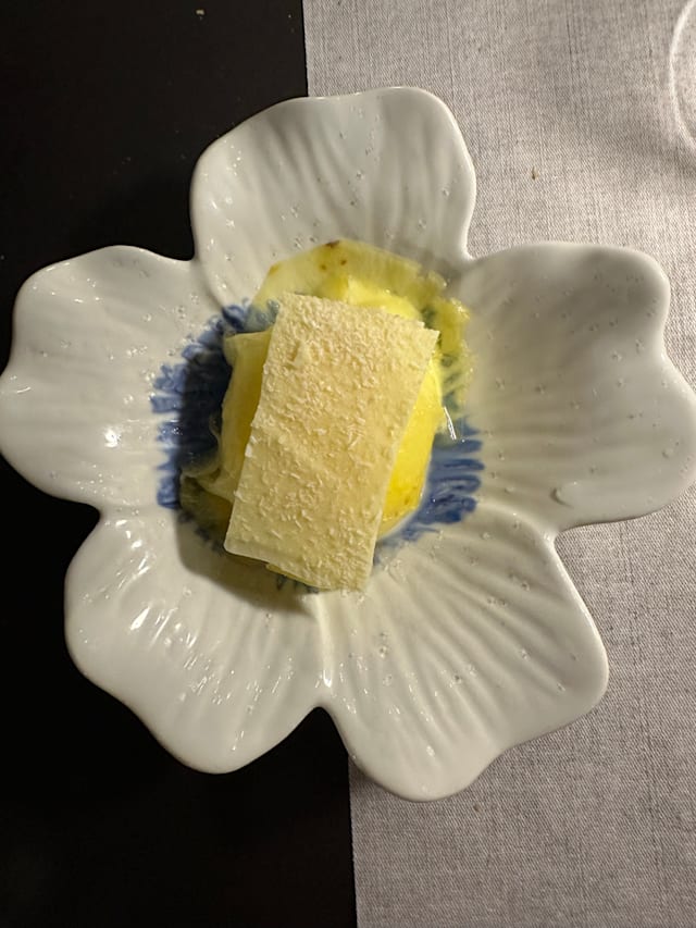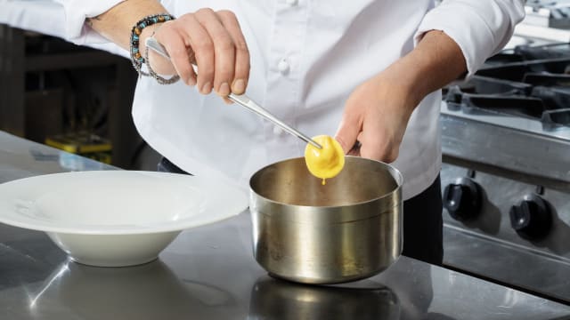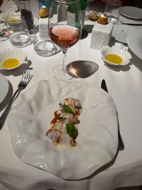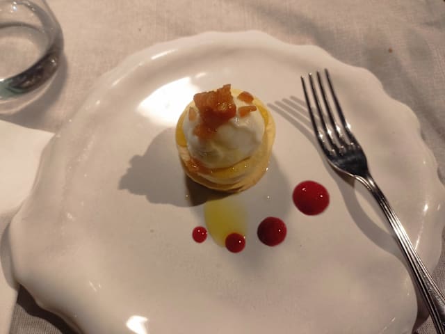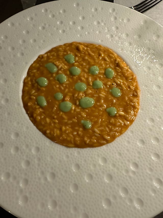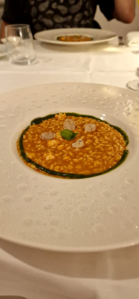 7.5/10Lovely location, oysters very sweet, rissotto very interesting with Jerusalem artichoke, mullet with honey generous but not exceptional flavours,danolu merigue and chocolate dessert - lovely rich dark chocolate and soft and hard meringue. Stuffed squids ok, belly pork as mains disppointingly small. Service not very welcoming- given plenty of time to choose then suddenly wine, bread oysters and first course all appeared together. On going confusion as had ordered just 2 oysters a piece and arrived with first course and assumed not to be shared. Similar with dessert as both ordered the same - so assumed 1 to share. Neither major, but definitely left with the sense that we were a bit of a nuisance being there. Would recommend worth a try as some very clever flavours but be aware of the service. Watched other dinners bring treated very politely. Not out normal experience