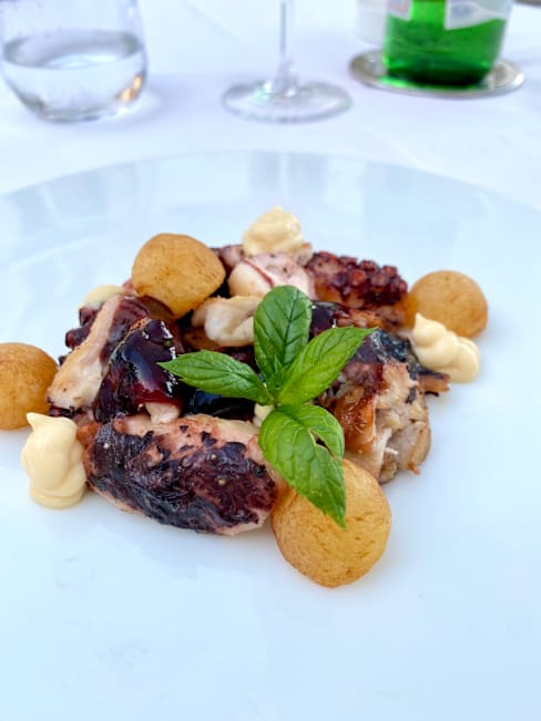 9.5/10Superb food (the cod carpaccio and smoked sea bream were particularly memorable) and friendly, attentive service, with stunning views over the coast.