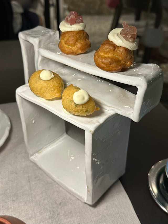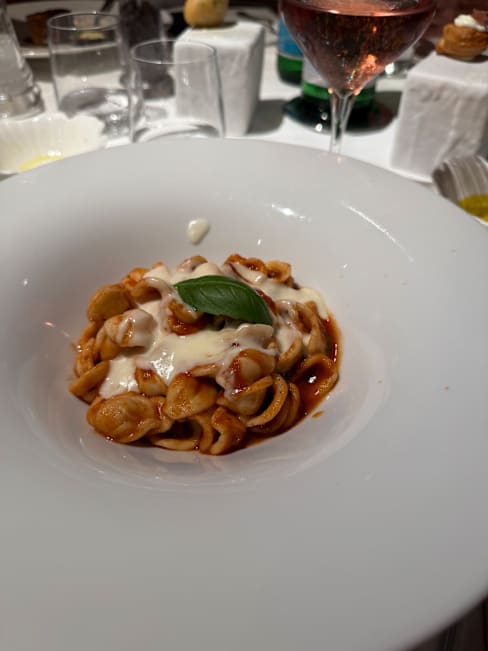 9.5/10I had made an advance reservation at Donlù for the night of our arrival on our first visit to Vieste. I based my choice on Trip Advisor rankings, which too often give 5 stars for most food at the lowest price. This restaurant surpassed all of our expectations. We were seated in a small, intimate space that separated us from the noise of three large groups in the main dining room. Our waiter was constantly attentive and the Chef’s 5-course tasting menu was absolutely exquisite in presentation and in taste! Our vote: Michelin Star quality with reasonable prices. The menu and wine list choices also provide for inexpensive choices of good local dishes and wine.