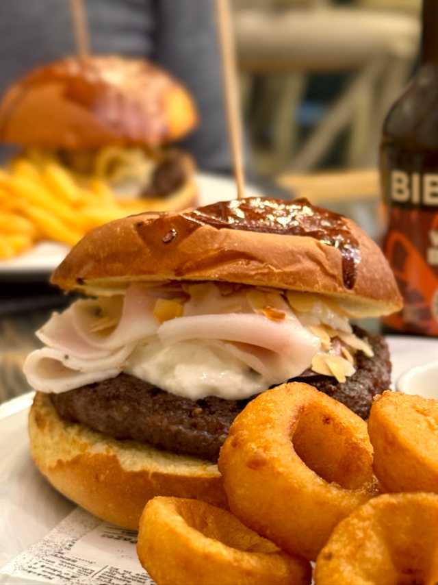 - Hamburger, caciocavallo silano fuso, peperoni arrostiti, patate silane, ‘nduja fatta in casa, maionese fatta in casa e chips di cipolla di tropea croccante.