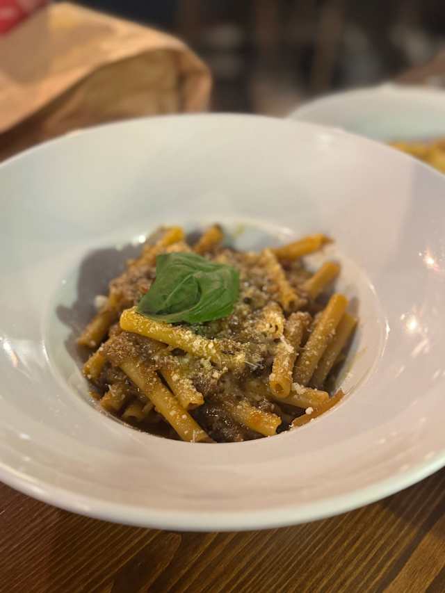 - Eliche giganti al ragu di agnello con carciofi croccanti