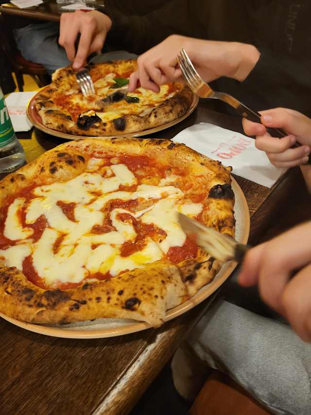 Sauce tomate san marzano, ragù mijoté 24h, mozzarella fior di latte, parmigiano reggiano DOP