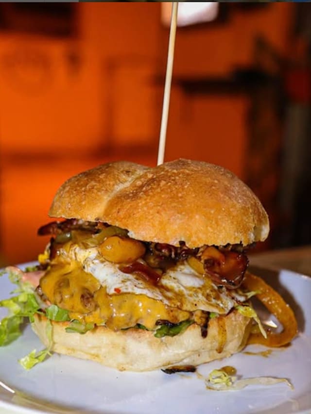 - Manzo, insalata, pomodoro, formaggio, uovo, bacon, cipolla, BBQ