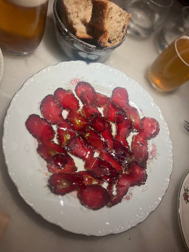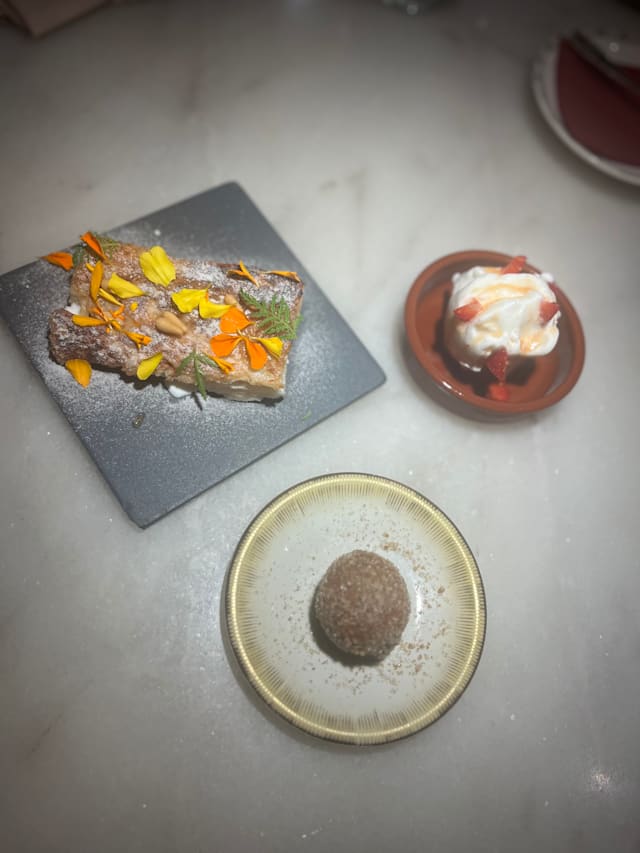 7/10This was my third visit to this restaurant. The first experience was excellent, the second was average, but the third was a complete disappointment. Previously, they served a memorable bone marrow dish with snails. This time, however, what arrived was a tiny scoop of butter/mayonnaise with a microscopic piece of bone marrow and just a few black caviar eggs on top. At first, I thought this was part of the dish, but I was mistaken. When I asked, the staff explained that they had changed the dish. (I suggest checking TheFork reviews and client photos to compare what it used to be.) The pagan was unavailable, and while the baby pig was acceptable, it was far from impressive. I honestly don’t know what happened here, but what was once a great place seems to be in steep decline.