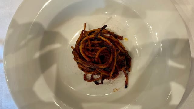 - Strascinata di farine di castagne con crema di zucca, salsiccia e fonduta di caciocavallo