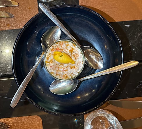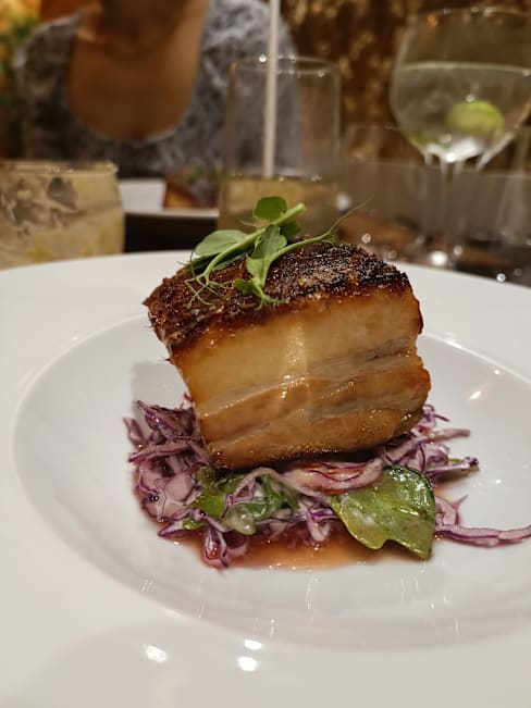 10/10+4We had such a great time here! The service was amazing, our server was super attentive and the timing of everything was spot on. We started with the pea panna cotta with shrimp and mango sorbet, the Asian squid salad, and the ceviche. All of it was so fresh and full of flavor. Honestly, not a single miss. I had the 36-hour pork belly for my main and it was melt-in-your-mouth good, plus it came with the best coleslaw I’ve ever had. They even surprised our birthday boy with a brownie and a candle, which was such a sweet touch. I finished with the chocolate tart with salted caramel and wow… absolutely delicious. Definitely recommend if you’re looking for great food and friendly service!