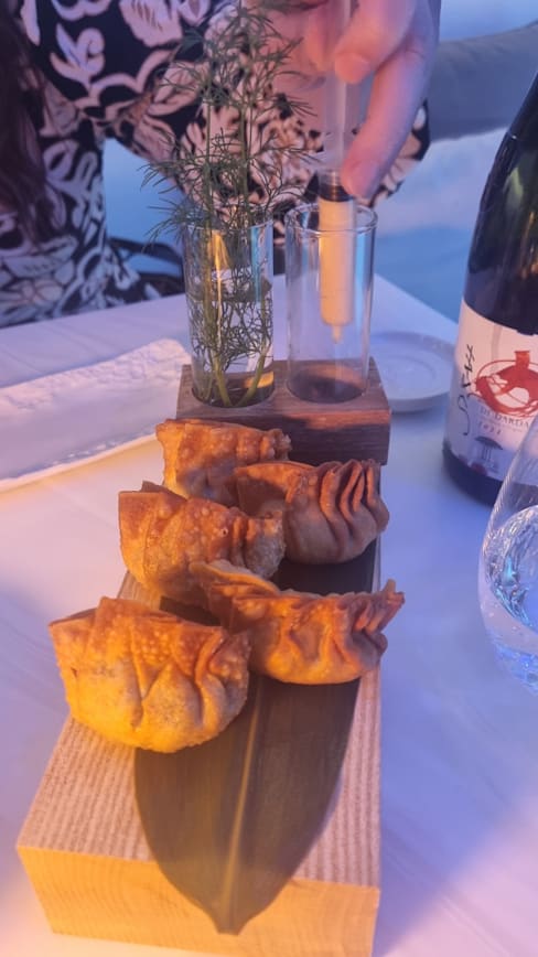 6/10Service he was very kind but missed out on a few details. There was only one person to take care of tables. Wine by glass terrible, who knows how long the bottle had been open. Constant change of colours in lighting was a bit intrusive to the eyes. Food was ok. The mushroom gyozas were very good. Very weird to be sharing space with a clinic, gives kind of fast food vibes