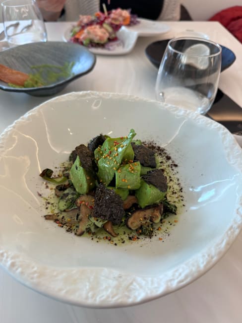 7.5/10Really enjoyed the food, I had the signature menu and my black cod was fantastic. Did not like the dessert as much would have preferred a softer cheesecake but loved the salmon sushi pizza, very original. Everything inspired cleanliness and freshness. The modern decor is beautiful but a tiny bit cold for dinner ( I am sure it works better at lunch time). The service was very good. Overall a must try.