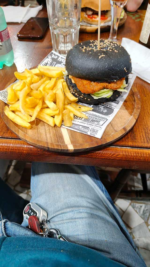 - Pane rosso alla barbabietola, hamburger di scottona 200 gr, bacon. Salsa cheddar e salsa bbq. barbaro in ira: BBQ all n duja al posto della BBQ normale