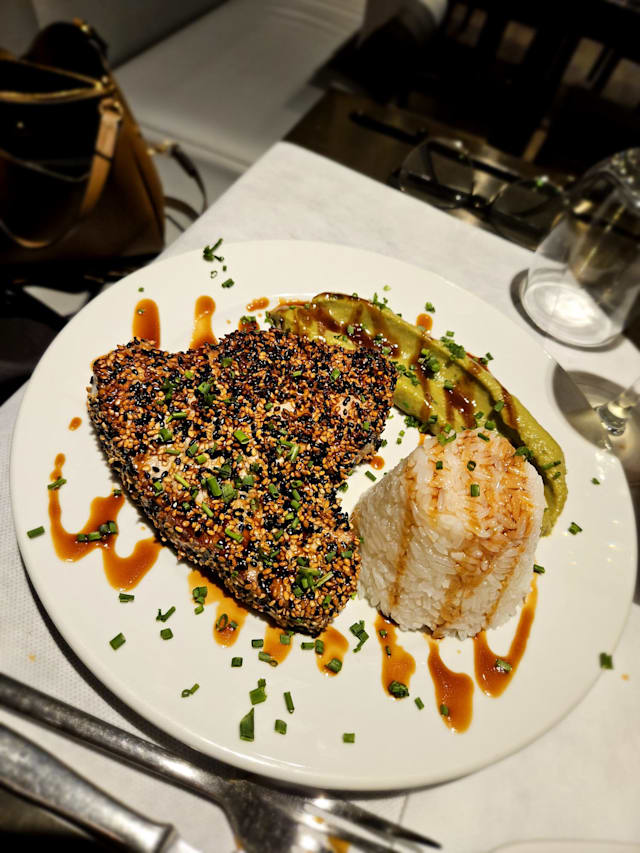 5/10Server brought our meals to another table mixed up ours and brought us wrong meal to one of us which had to be remade. By the time that arrived, other person was finished. Sea bass was dry, steak was very tough, vegetables were cool. Appetizers were very good.