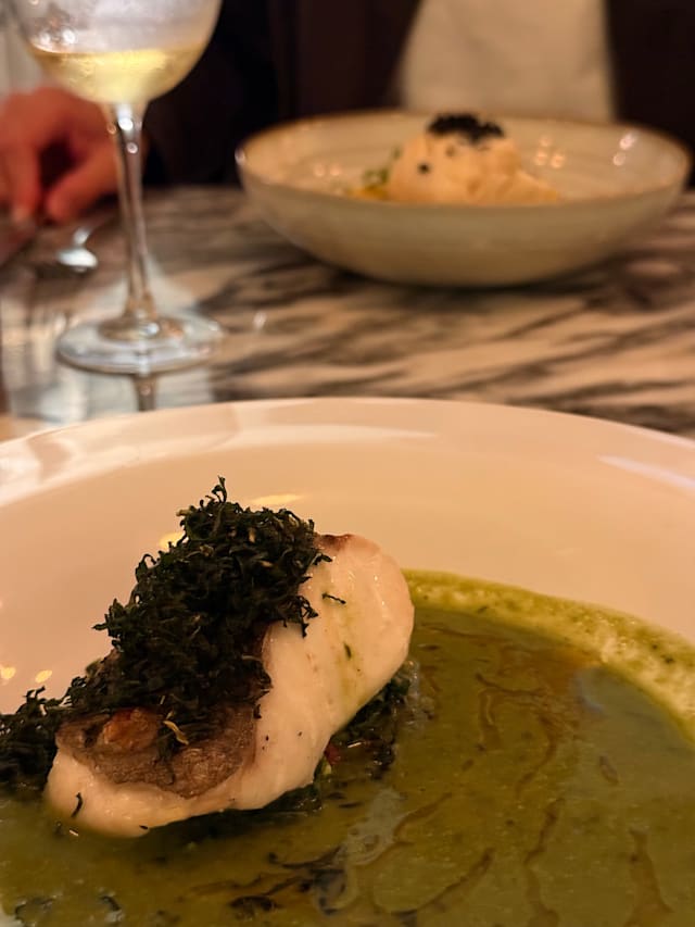 9.5/10The food was fabulous. I loved the gyoza appetizer which was a super creative fusion of food traditions and taste, but the main with Hake, razor neck clams and lemon risotto was to die for. Service was perfect, attentive with helpful suggestions but not hovering. Dining alone can be a hit or miss experience, and this was literally perfect.