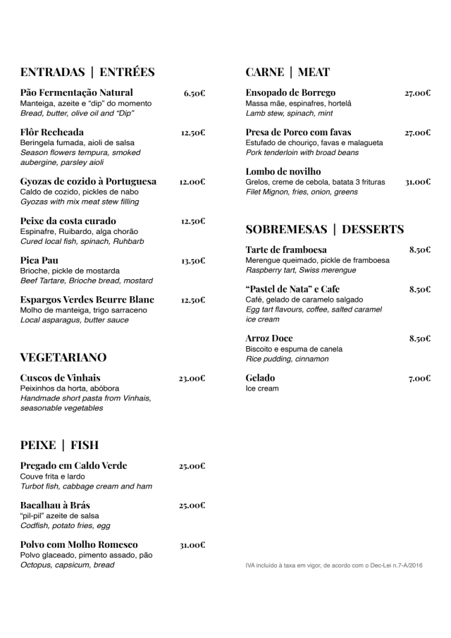 10/10Wonderful service, fascinating menu. Traditional and satisfying Portugese dishes with a unique touch and beautiful presentation. Highly recommmended,
