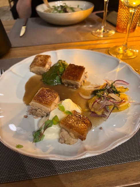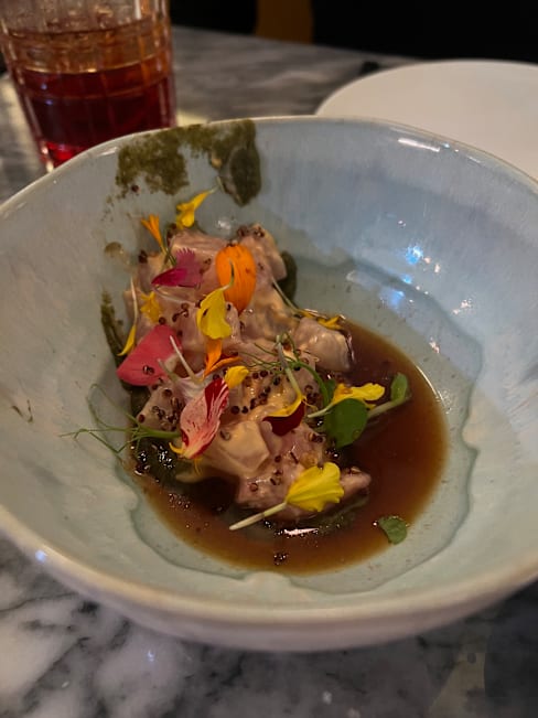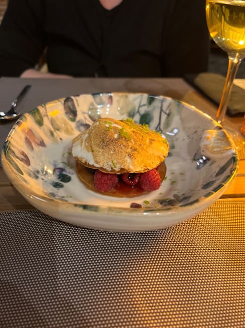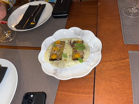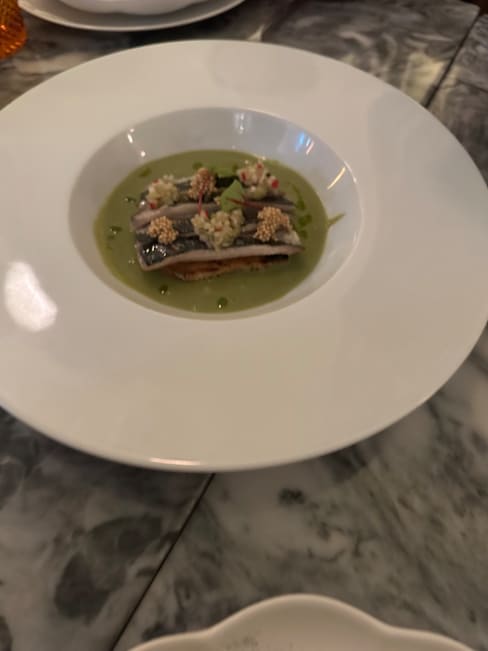 4/10It's hard to understand how this restaurant earned a Michelin star. The food was unexceptional and lacking in flavor, and I had to send my order back due to its being overcooked. Our server seemed to be training on the job, shadowing the person I believe was the manager, who also served as the bartender. We expected an elevated dining experience, instead, staff were in jeans and sneakers and inattentive. The design of the space was its only saving grace.