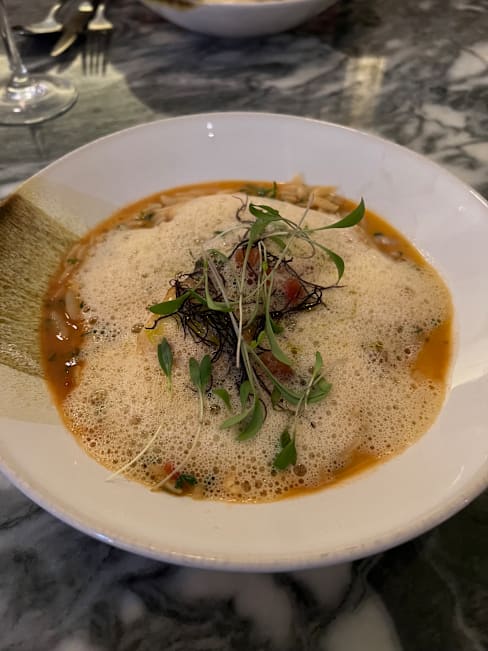 10/10What a. wonderful and delicious experience. Beautiful, cozy feeling with a deco/ mcm feel. Food was exceptional, creative and great to look at. Nothing felt heavy. You’ll thank me if you go!
