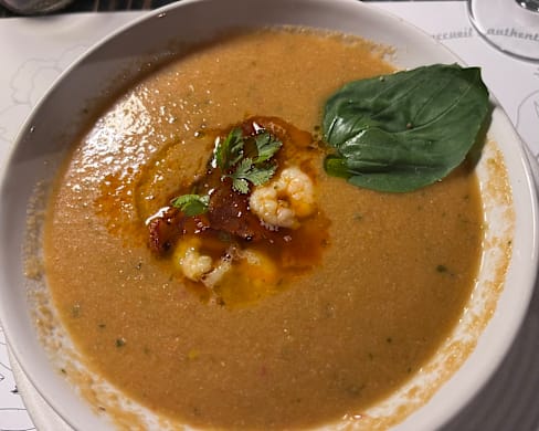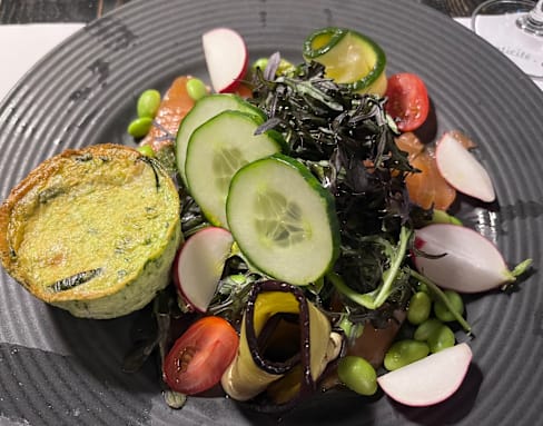 10/10We just enjoyed a terrific vegetable-forward and cool, fresh dinner on this first day of summer. The gazpacho was excellent, my salmon dish was so pleasing, and my husband’s vegetarian dishes were the best he’s had. Thank you for great food and making our last day in Provence memorable!