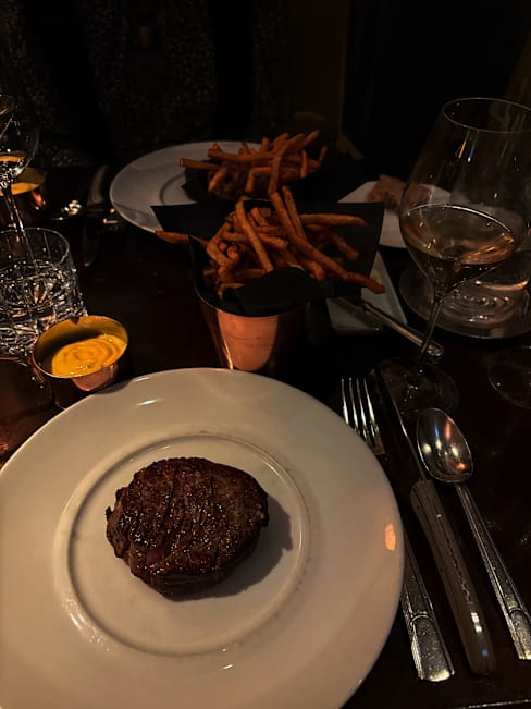 9/10Excellent service, excellent atmosphere. We had escargots, fillet with pommes allumettes and hot chocolate mousse. Everything was excellent, especially the perfectly cooked fillet, only the fries came a bit brown and soft. Mousse with sorbet was delicious.